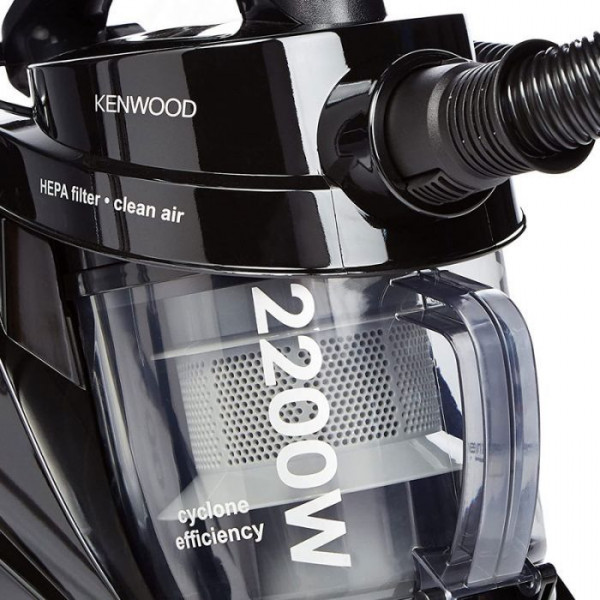 Aspirateur Sans Sac KENWOOD - Puissance: 2200 Watts - Capacité du Réservoir: 2.5 litres - Filtre HEPA - Bac à poussière facile à vider - Tube télescopique d'extension - Bouton de rembobinage automatique du cordon - Poignée de transport pratique - Atteindre les endroits difficiles - Nettoyeur de maison fiable - Simple et efficace - Poids: 10,4 kg - Couleur: Noir - Garantie: 1 an