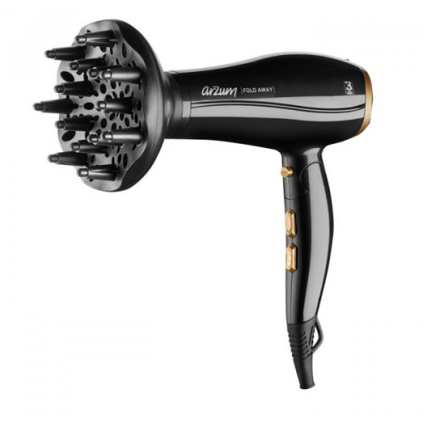 Sèche Cheveux Pro ARZUM - Puissance: 2300 Watts - Nombre de Vitesses: 2 Vitesses - Nombre de températures: 3 températures - Moteur DC - Bec + Diffuseur de volume - Tête de collection d'air - Touche air froid - Pliable - Couleur: Noir - Garantie: 3 ans